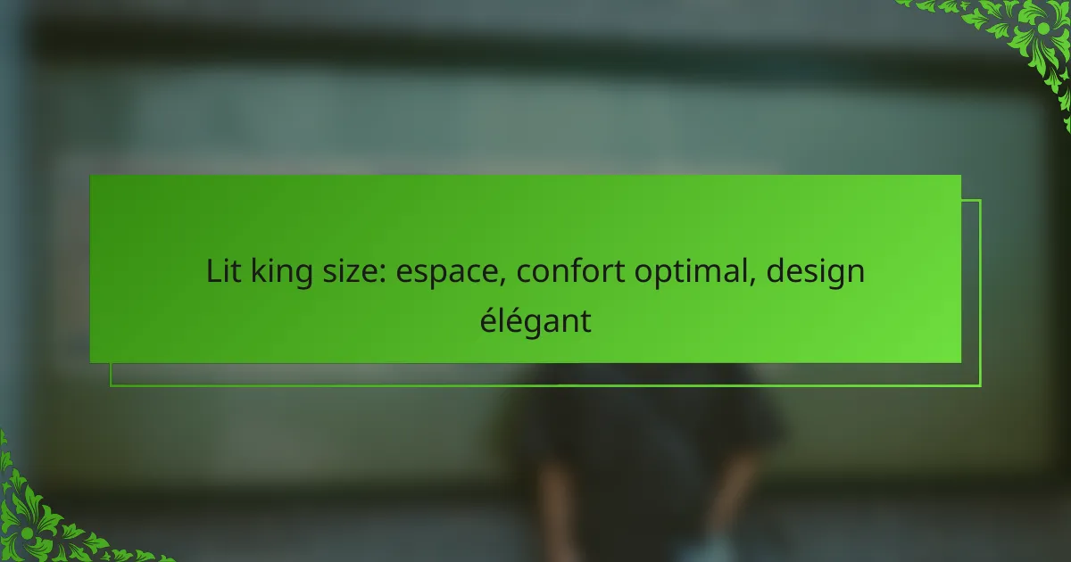 Pour choisir un lit king size, il est essentiel de considérer des critères tels que les matériaux, les dimensions, le design, le soutien et le budget. Un bon lit king size doit offrir un confort optimal tout en s’intégrant harmonieusement dans votre espace de vie.