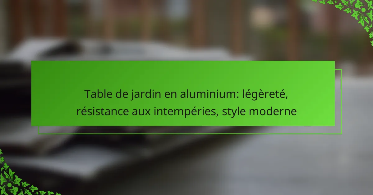 Pour évaluer la résistance aux intempéries d’une table de jardin en aluminium, il est essentiel de considérer les matériaux, les traitements de surface, ainsi que les tests de durabilité. Ces éléments déterminent la capacité de la table à résister aux conditions climatiques variées, telles que la pluie, le soleil et la corrosion.