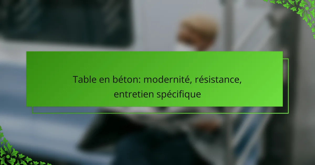 La table en béton est un choix idéal pour ceux qui recherchent une pièce à la fois moderne et résistante. Ce matériau offre une esthétique contemporaine tout en garantissant une durabilité exceptionnelle, tant pour les espaces intérieurs qu’extérieurs. Un entretien régulier avec des produits spécifiques est essentiel pour préserver son apparence et sa longévité.